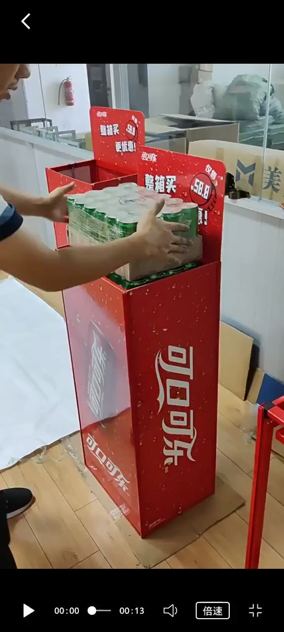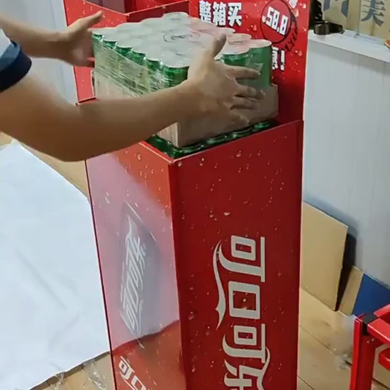 The Spring Loaded Snack Verital Dispenser is capable of automatically dispensing items loaded into it. Items such as drinks, milk, and snacks can be loaded and displayed.